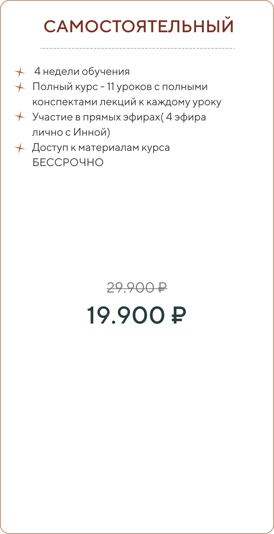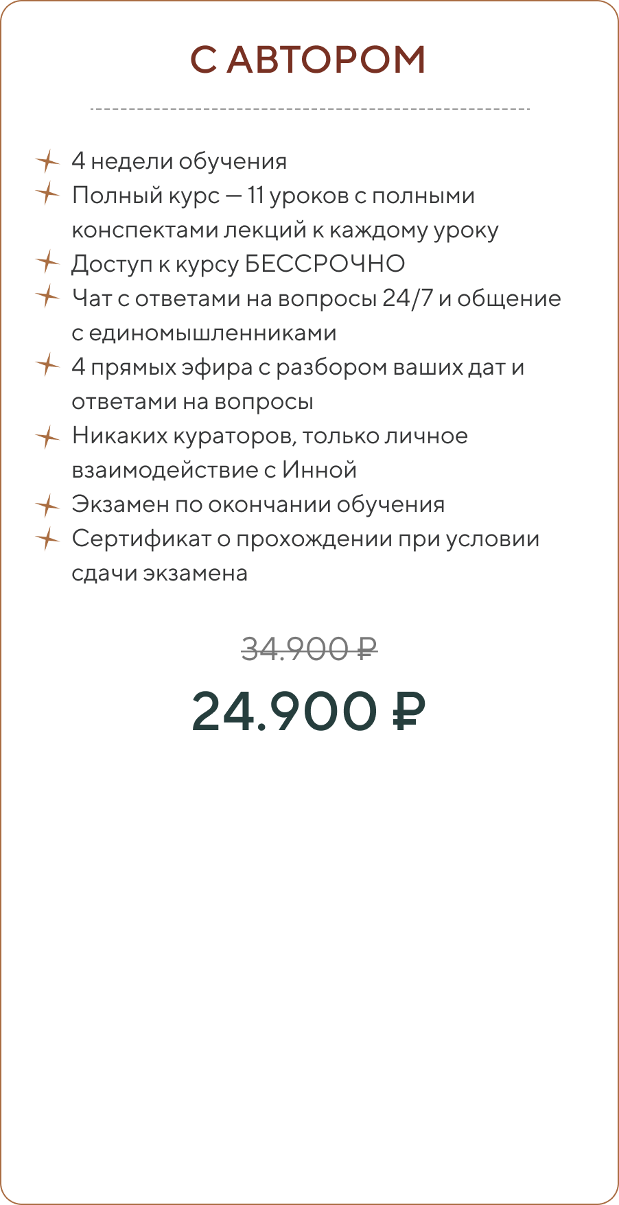 • Все конспекты для вас уже готовы, вам не нужно проходить дополнительных курсов, чтобы начать работать. Мои знания основаны на нескольких школах нумерологии, опыте и книгах. Я скурпулезно создавала свои лекции, в которых есть все и максимально четко, емко, без воды