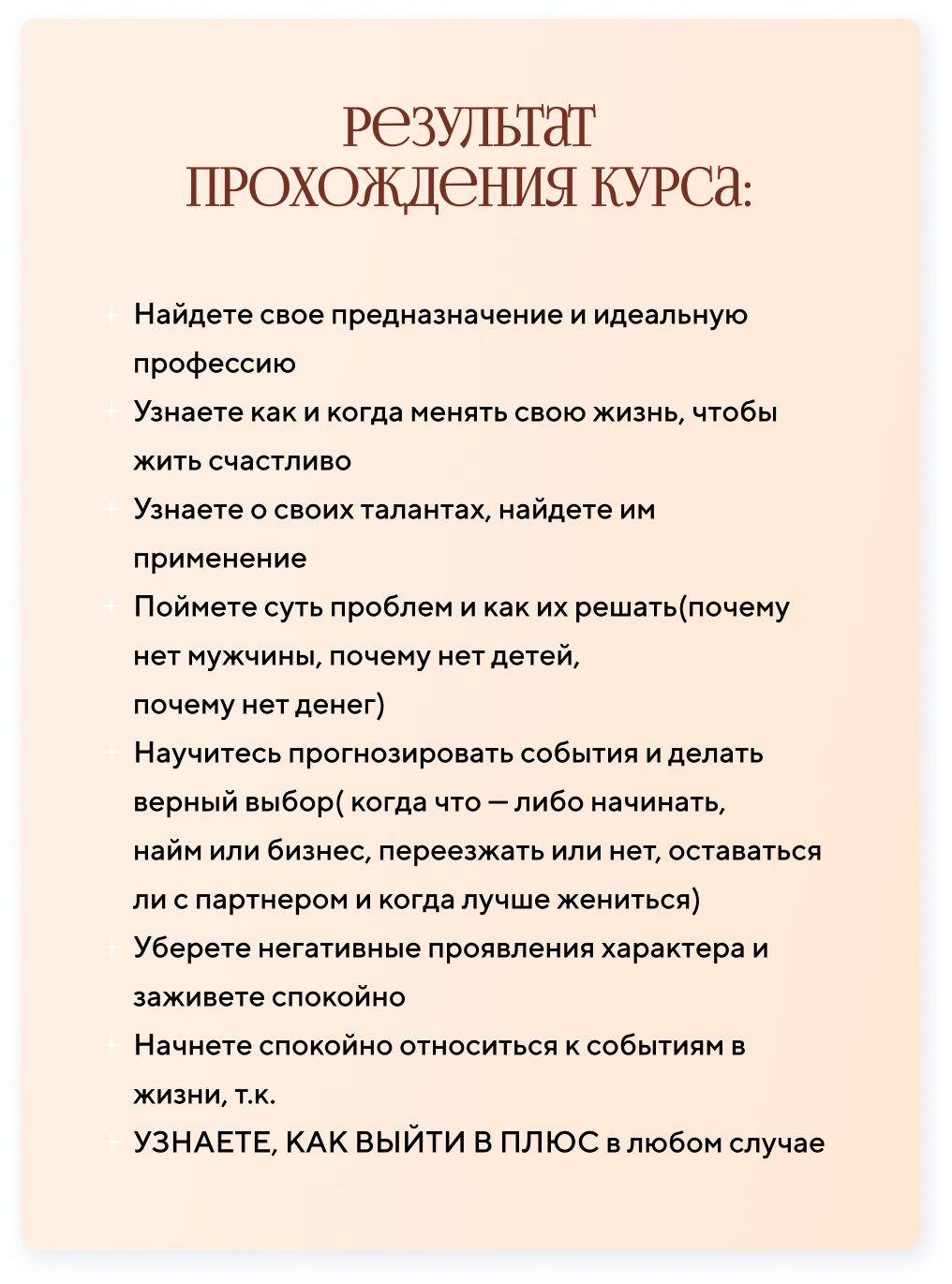‌Начнете спокойно относиться к событиям в жизни, т.к. УЗНАЕТЕ, КАК ВЫЙТИ В ПЛЮС в любом случае